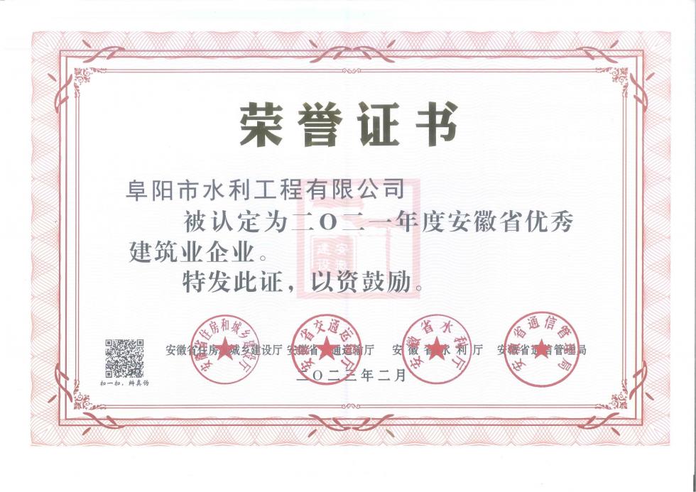 2021年度安徽省优秀建筑业企业
